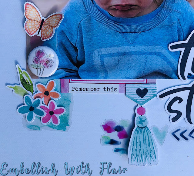 I used the Watercolour Flowers Flair set I love how they worked so well with the papers embellishments and I chose from the Happiness Range from Cocoa Vanilla Studio